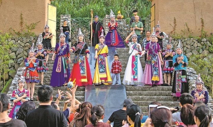 畬族婚嫁民俗,變?yōu)槁糜萎a(chǎn)品,不僅在雙后崗村演出,還走向大均鄉(xiāng)等地,成為一道特色風(fēng)景。