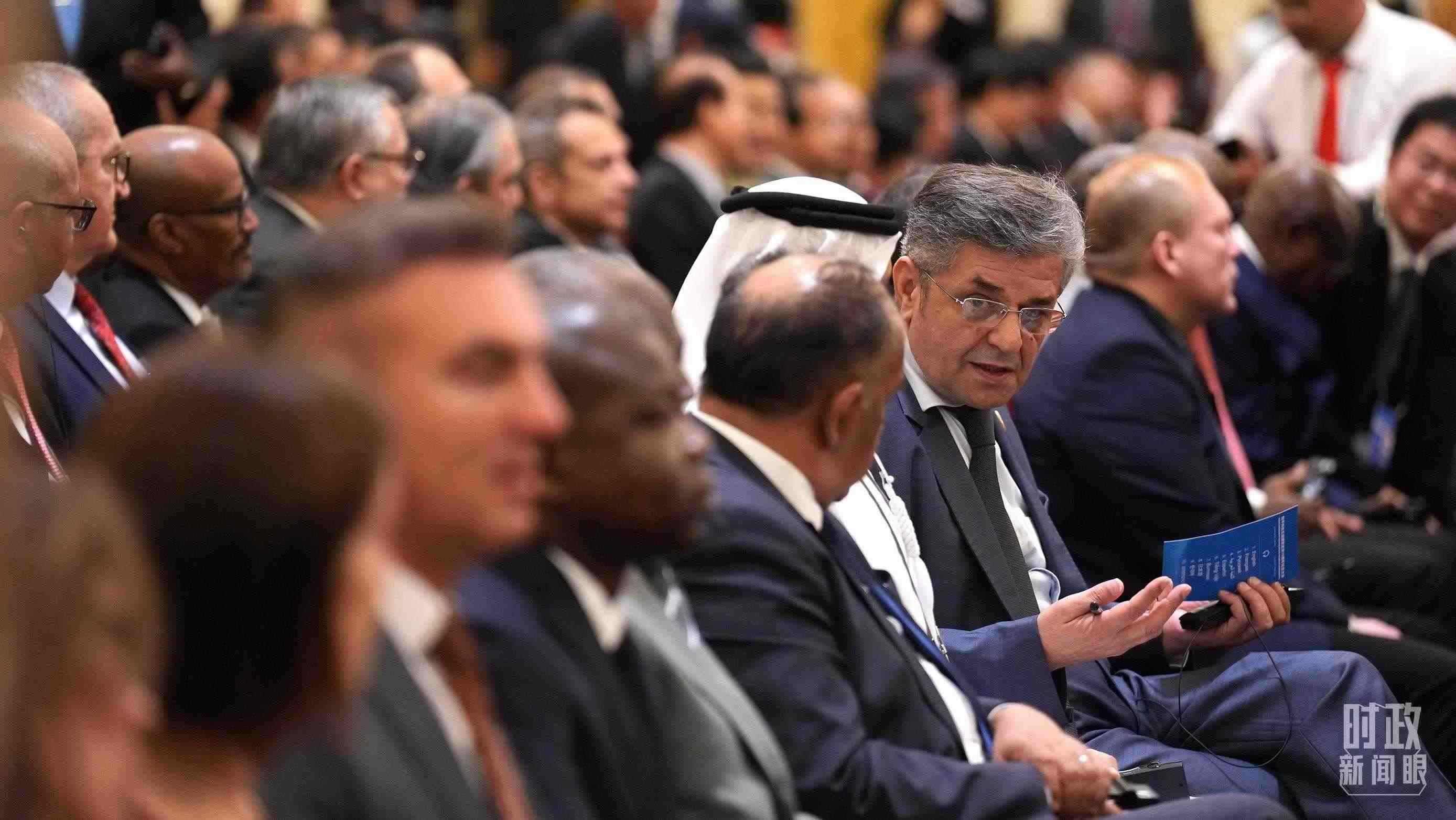 △2023年10月,第三屆“一帶一路”國際合作高峰論壇參會(huì)人員駐足了解“一帶一路”標(biāo)志性項(xiàng)目。(總臺(tái)國廣記者李晉拍攝)