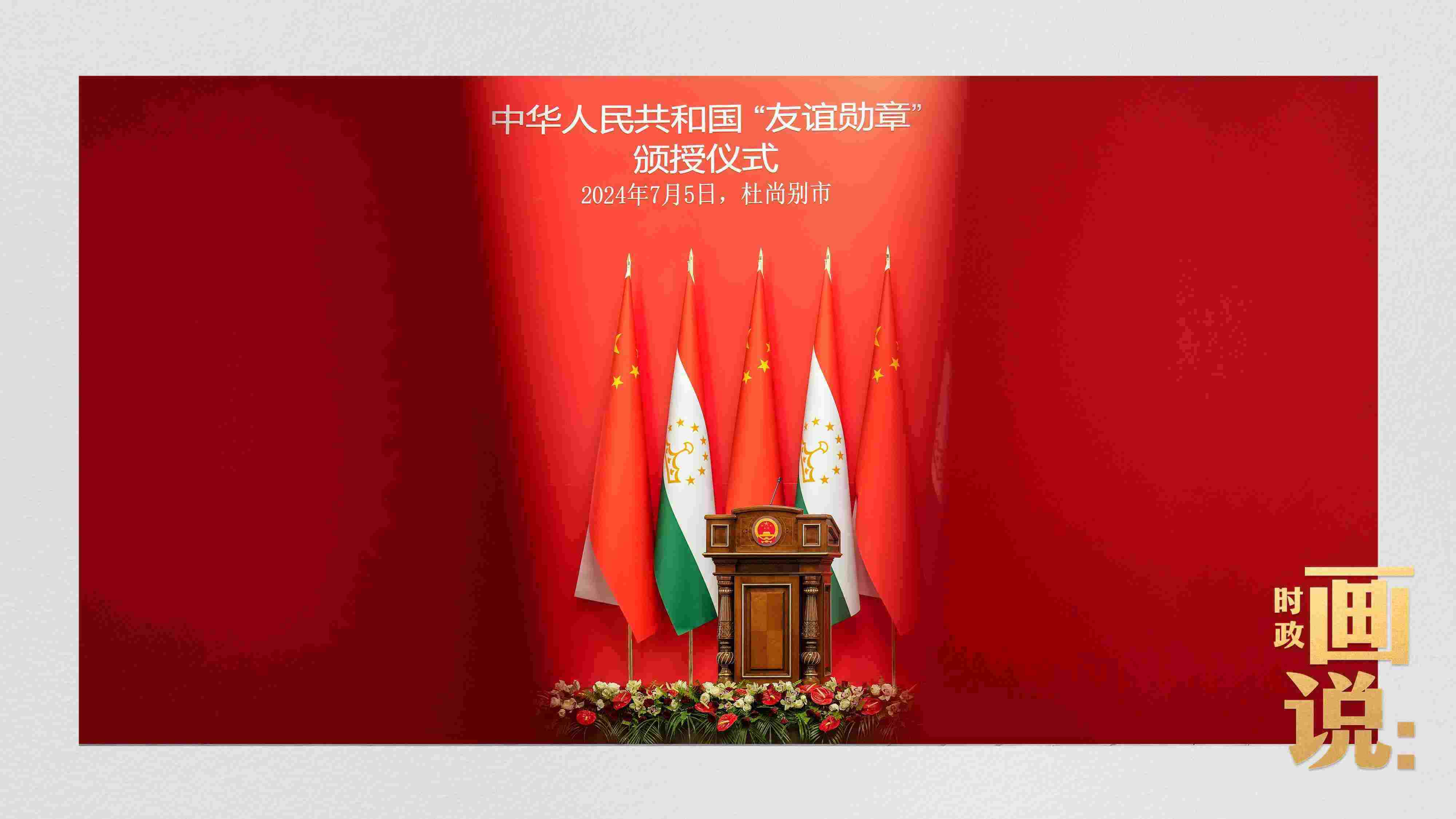 當?shù)貢r間7月5日下午,國家主席習(xí)近平在杜尚別總統(tǒng)府向塔吉克斯坦總統(tǒng)拉赫蒙頒授“友誼勛章”。這是中國首次在境外頒授“友誼勛章”,是為表達中國人民對拉赫蒙總統(tǒng)和塔吉克斯坦人民友好感情作出的特殊安排。