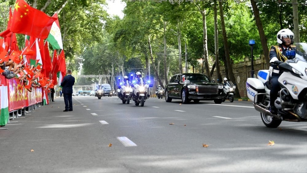 赴機場途中,當?shù)厝A僑華人和中資機構(gòu)代表在道路兩旁揮舞中塔兩國國旗,祝賀習(xí)近平主席對塔吉克斯坦國事訪問取得圓滿成功。
