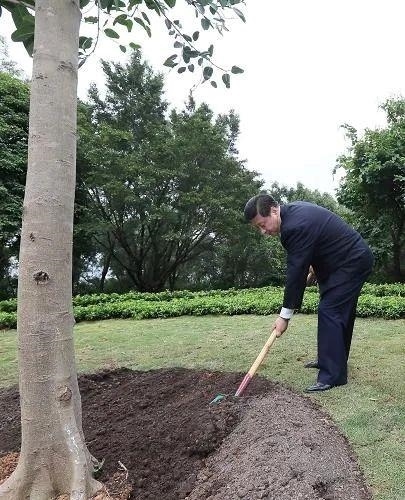 2012年12月,黨的十八大后首次赴地方考察,習近平總書記來到深圳蓮花山公園,深情瞻仰鄧小平塑像,并親手種下一棵高山榕。