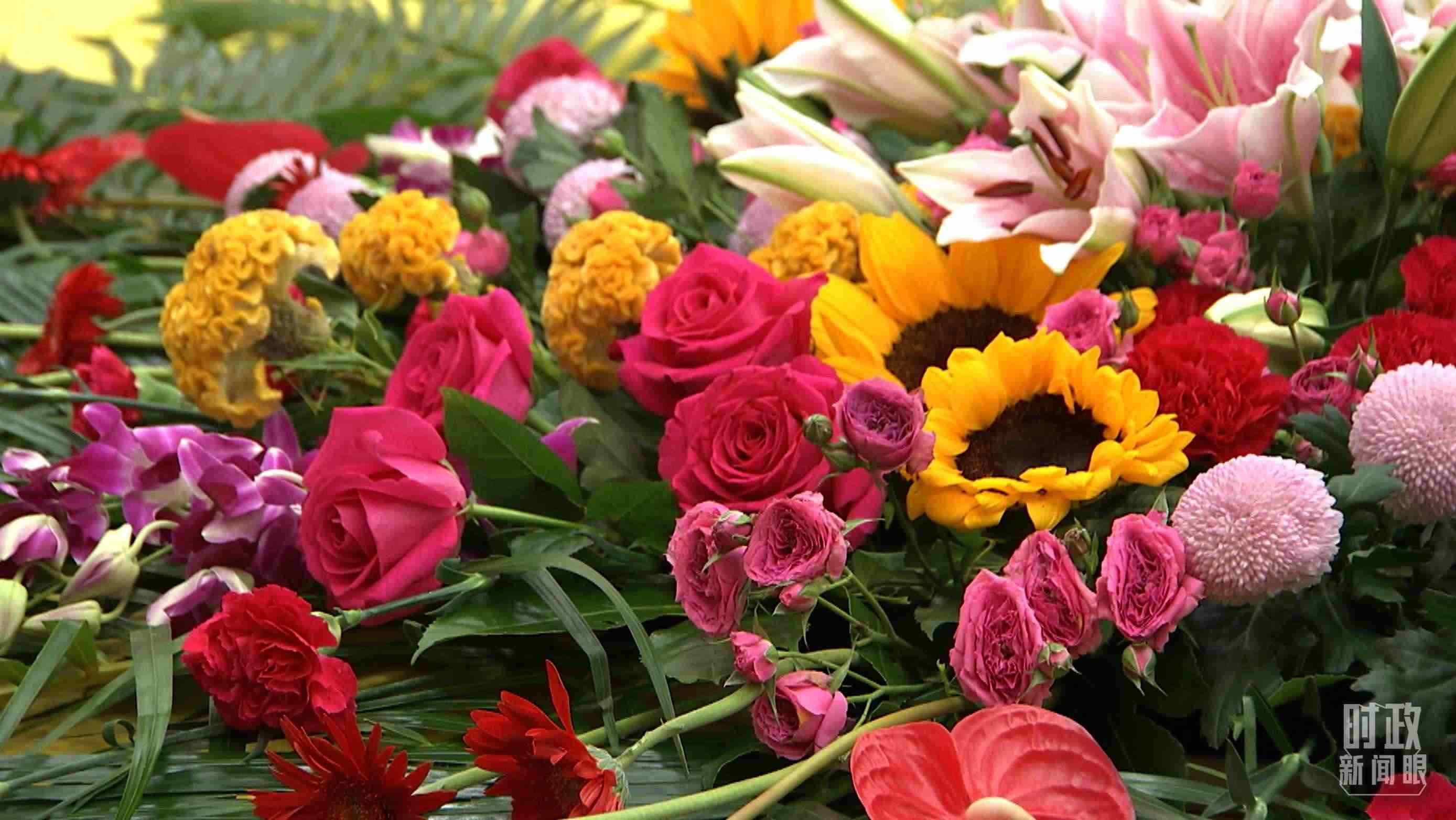 秋雨紛紛,紅旗獵獵,鮮花競放,追思無限。