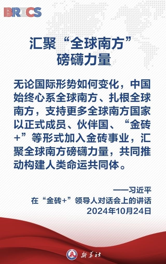 當?shù)貢r間10月24日上午,國家主席習近平在喀山會展中心出席“金磚+”領(lǐng)導人對話會并發(fā)表題為《匯聚“全球南方”磅礴力量 共同推動構(gòu)建人類命運共同體》的重要講話,闡明中國主張——