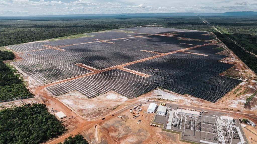 這是2024年6月7日在巴西皮奧伊州拍攝的由中國(guó)國(guó)家電力投資集團(tuán)公司(國(guó)家電投)巴西公司投資并主導(dǎo)建設(shè)的馬蘭加圖光伏電站(無(wú)人機(jī)照片)。新華社記者 王天聰 攝