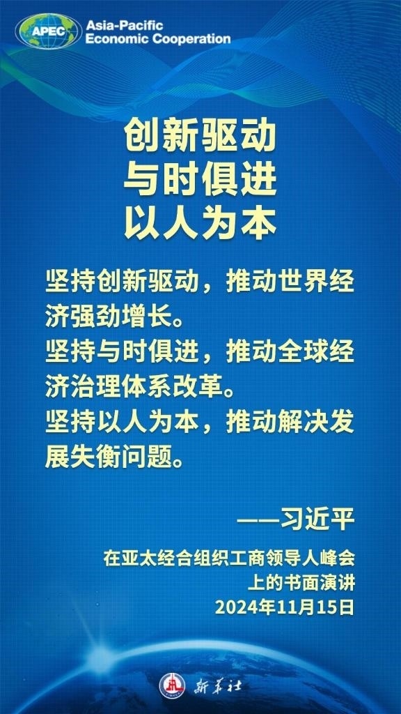 當(dāng)?shù)貢r間11月15日上午,國家主席習(xí)近平向在利馬舉行的亞太經(jīng)合組織工商領(lǐng)導(dǎo)人峰會發(fā)表題為《把握時代大勢 共促世界繁榮》的書面演講,這樣闡述亞太合作——