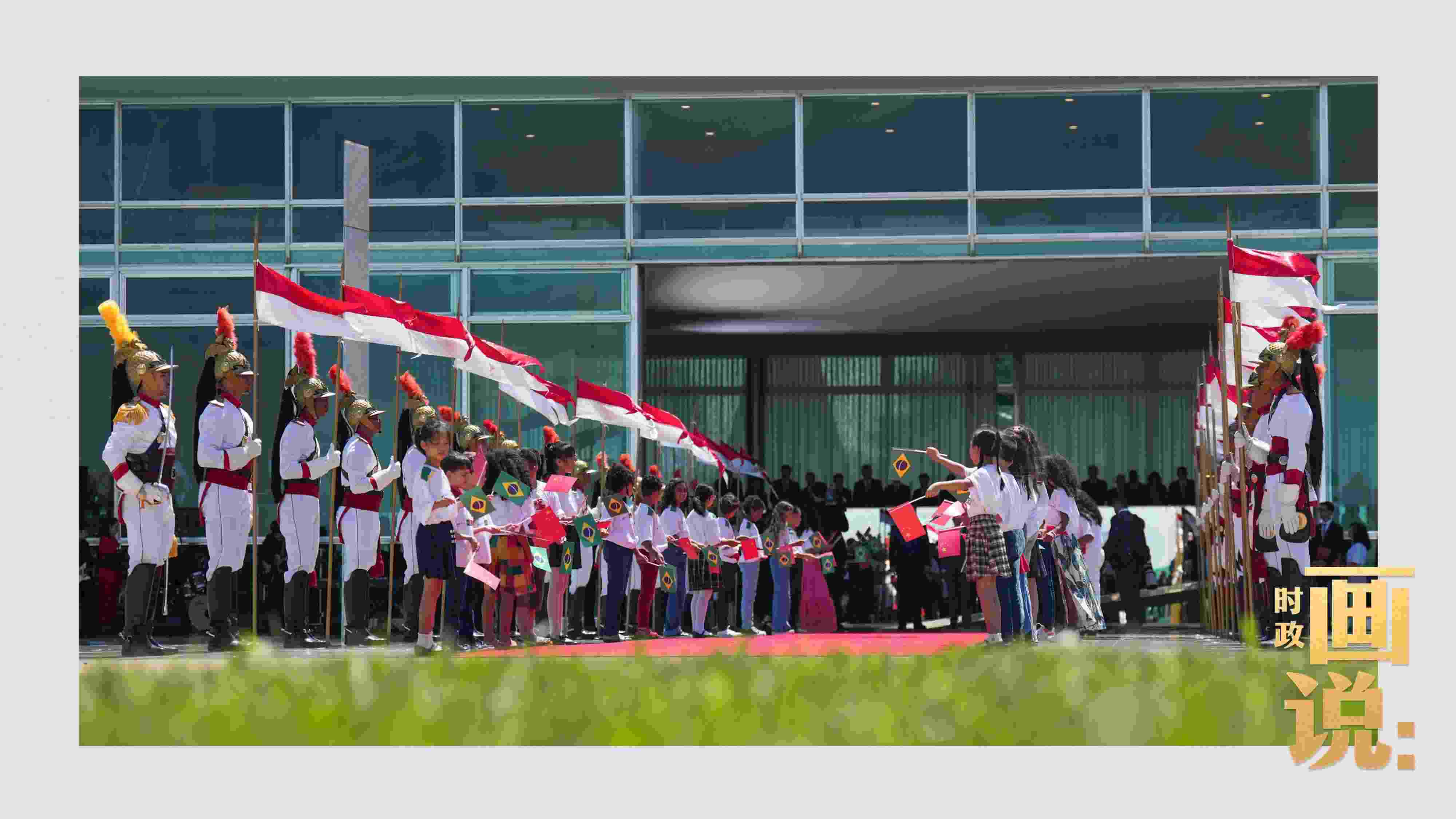 騎兵護衛(wèi)習(xí)近平主席專車抵達(dá)儀式現(xiàn)場,巴西藝術(shù)家用中文深情唱響中國經(jīng)典民歌《我的祖國》,現(xiàn)場氣氛隆重?zé)崃摇?/p>