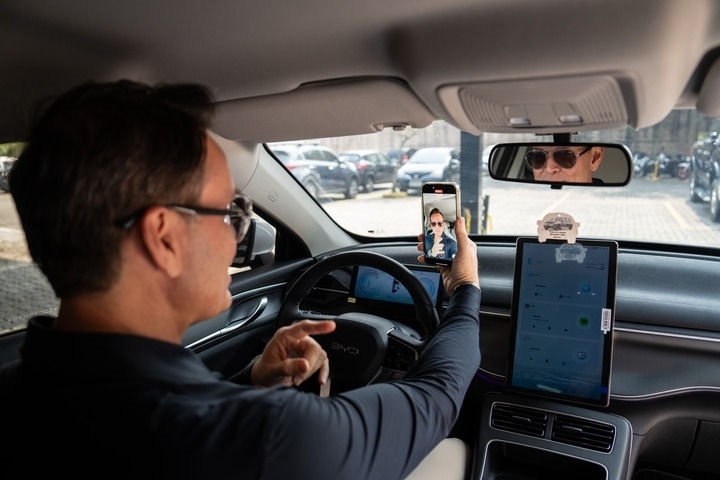 2024年9月2日,巴西網(wǎng)紅費(fèi)利佩·費(fèi)拉在里約熱內(nèi)盧的汽車改裝店中錄制視頻。費(fèi)拉是一名粉絲超過(guò)400萬(wàn)、專門做汽車銷售和改裝的網(wǎng)紅,由于他經(jīng)常推薦純電動(dòng)或者混合動(dòng)力新款車型,也被稱為巴西新能源車“民間大使”。每逢周末,費(fèi)拉都會(huì)受邀去各品牌的4S店,包括中國(guó)品牌比亞迪在內(nèi)的多家在巴車企都與他簽約,在門店開(kāi)業(yè)或新車型上市時(shí)邀請(qǐng)他出席。新華社記者 王天聰 攝