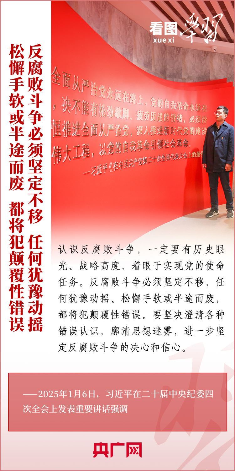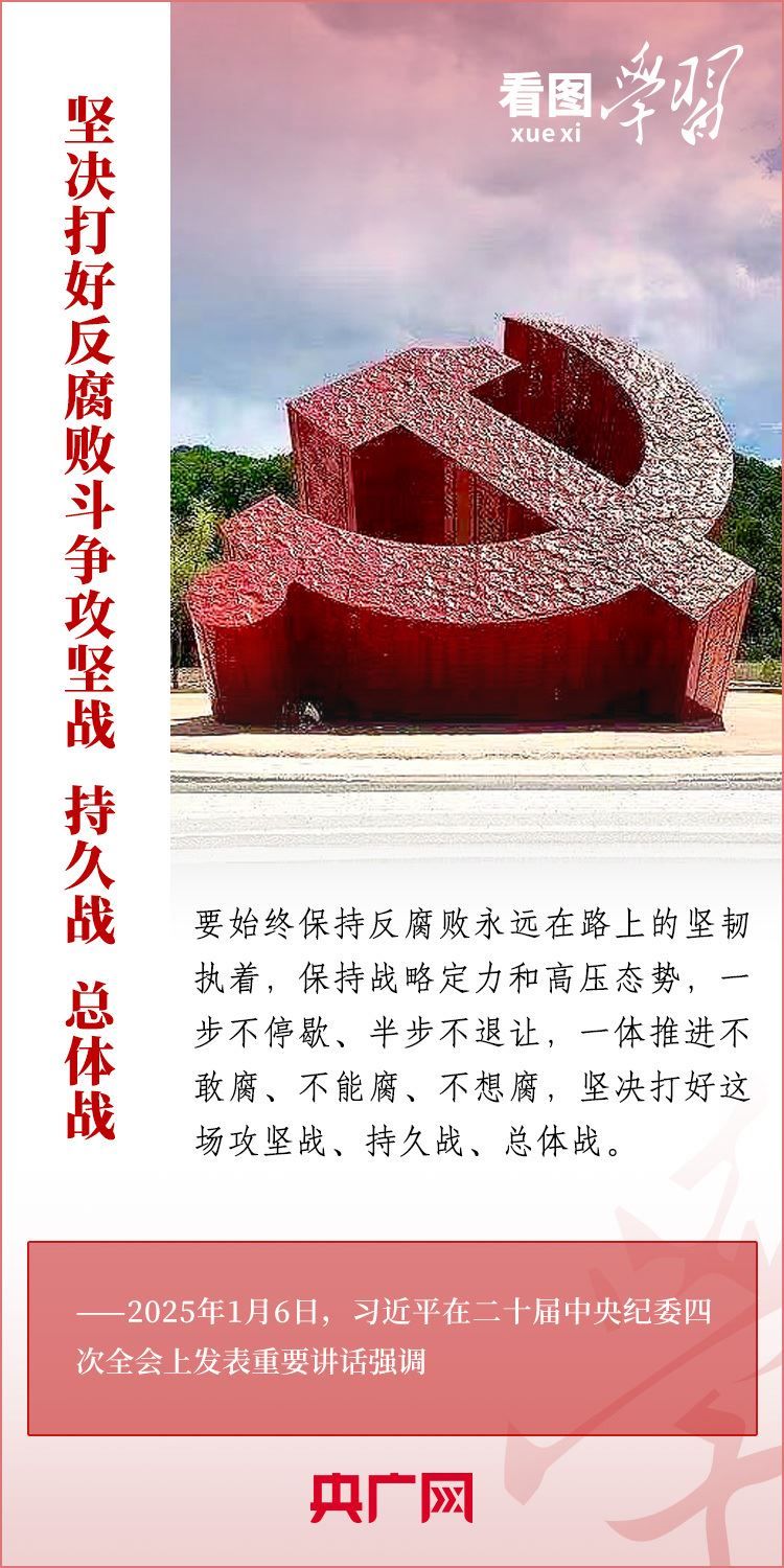 1月6日,習近平總書記在二十屆中央紀委四次全會上發(fā)表重要講話,充分肯定過去一年全面從嚴治黨取得的新進展、新成效,深刻分析當前反腐敗斗爭形勢,對堅決打好反腐敗斗爭攻堅戰(zhàn)、持久戰(zhàn)、總體戰(zhàn)提出明確要求??倳洀娬{,新時代新征程,必須堅持用改革精神和嚴的標準管黨治黨,努力取得更大成效,確保黨的二十大和二十屆三中全會部署落地落實,確保黨始終成為中國特色社會主義事業(yè)的堅強領導核心,推動中國式現(xiàn)代化行穩(wěn)致遠。一起來學習!