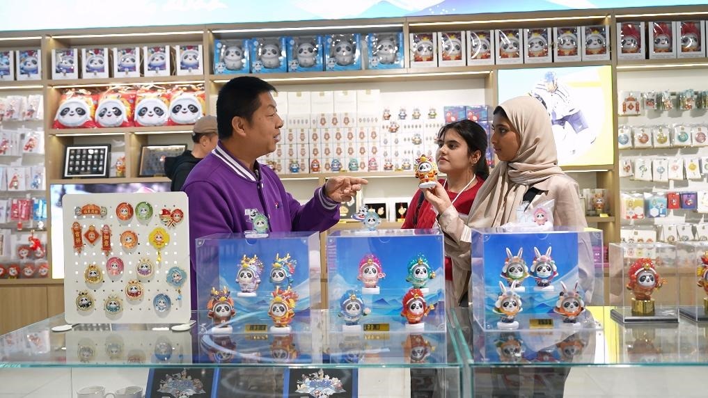 在第一站北京,她已給阿聯(lián)酋的親友準(zhǔn)備了不少禮物:中華美景冰箱貼、中式小帽子、大熊貓鑰匙扣、印有長城圖案的杯子和紀(jì)念幣……在北京奧運(yùn)博物館紀(jì)念品商店,她頭一次接觸中國潮玩,對(duì)憨態(tài)可掬的盲盒玩偶“龍墩墩”愛不釋手。