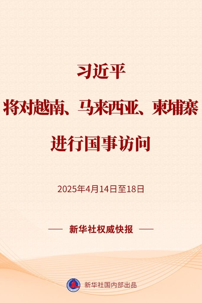 習(xí)近平將于4月14日至18日對越南、馬來西亞、柬埔寨進(jìn)行國事訪問。
