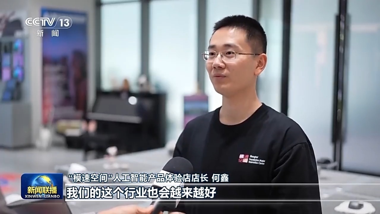 “模速空間”人工智能產(chǎn)品體驗(yàn)店店長 何鑫:總書記看得也是非常仔細(xì),總書記也親自試戴了這一款,我們的一個(gè)觀影的眼鏡。它大概有100多英寸的投屏效果。相信有總書記的關(guān)心,我們的這個(gè)行業(yè)也會越來越好。