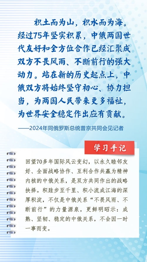 我們一起來學習品讀這些飽含哲思的論述,從中感悟新時代中俄關系在復雜的外部環(huán)境下堅毅前行之道,感悟習近平主席作為大黨大國領袖、世界級領袖的時代擔當與天下情懷。