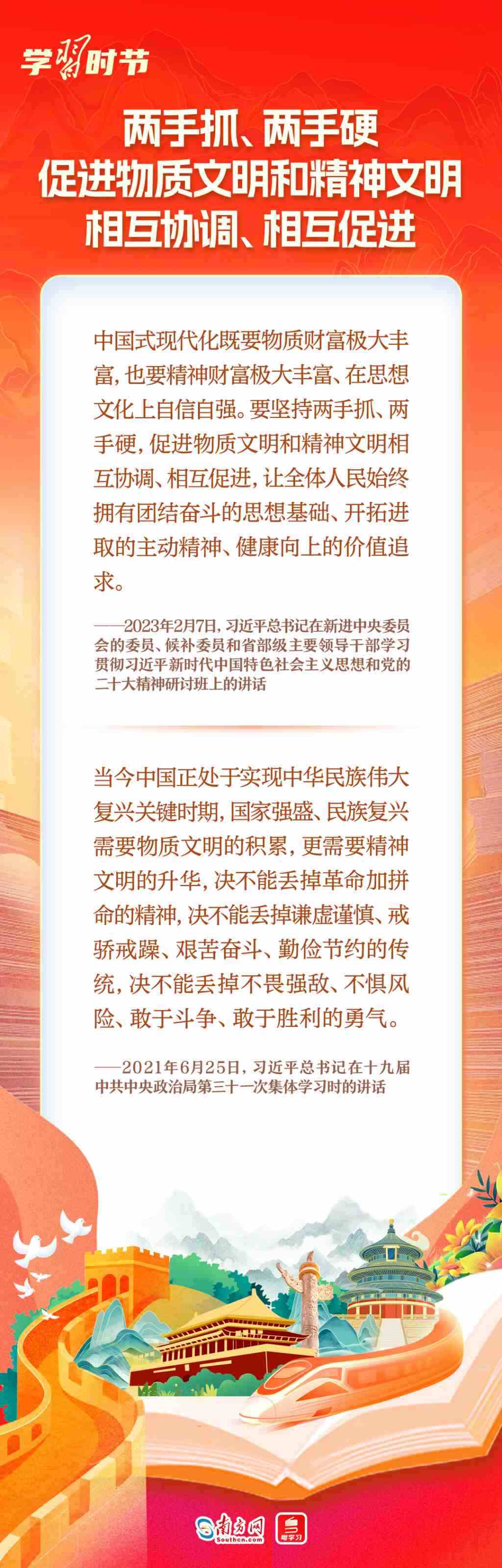 黨的十八大以來(lái),黨中央持續(xù)推進(jìn)社會(huì)主義精神文明建設(shè),鞏固壯大社會(huì)主流價(jià)值,全民族精神面貌更加奮發(fā)昂揚(yáng),人民文明素養(yǎng)和社會(huì)文明程度顯著提升。習(xí)近平總書記高度重視社會(huì)主義精神文明建設(shè),近年來(lái)在不同場(chǎng)合就精神文明建設(shè)發(fā)表了一系列重要論述,為改進(jìn)創(chuàng)新精神文明建設(shè)工作、豐富人民群眾精神文化生活指明了方向、提供了遵循。我們整理了相關(guān)論述,與您繼續(xù)深入學(xué)習(xí)領(lǐng)會(huì)。