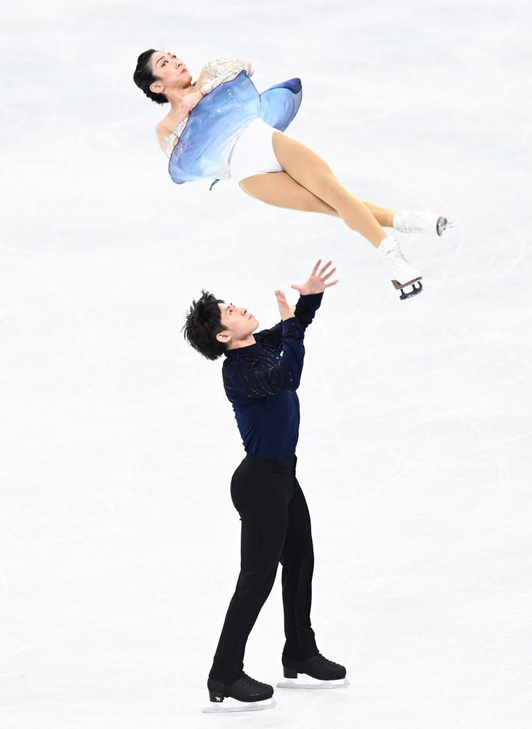 2月19日,中國(guó)選手隋文靜(上)/韓聰在比賽中。新華社記者蘭紅光攝