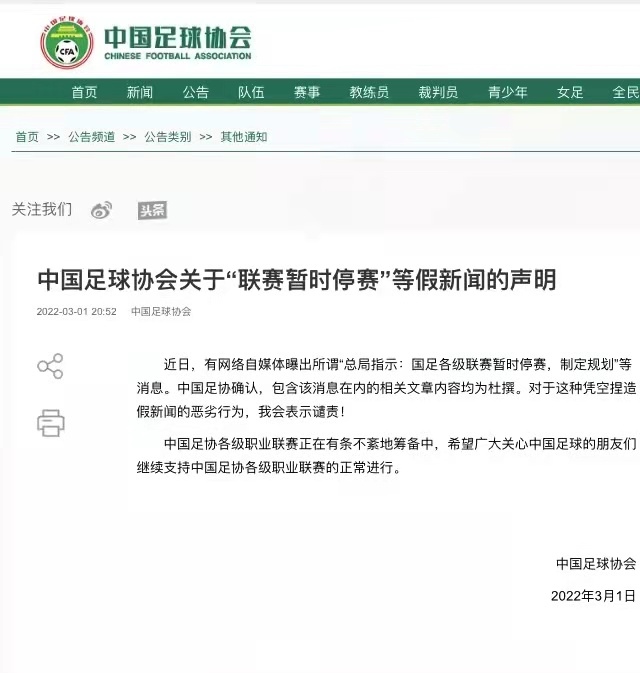 中國(guó)足協(xié)表示:“中國(guó)足協(xié)各級(jí)職業(yè)聯(lián)賽正在有條不紊地籌備中,希望廣大關(guān)心中國(guó)足球的朋友們繼續(xù)支持中國(guó)足協(xié)各級(jí)職業(yè)聯(lián)賽的正常進(jìn)行。”