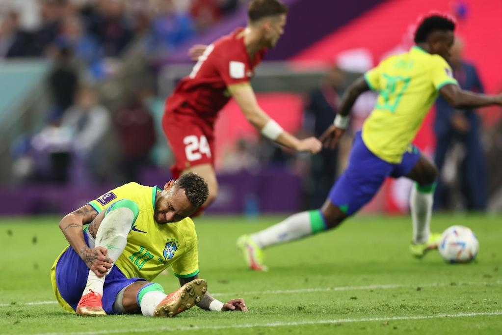 巴西隊(duì)當(dāng)天以2:0擊敗塞爾維亞隊(duì),內(nèi)馬爾在比賽尾聲階段受傷后被換下,坐在替補(bǔ)席上的他以球衣掩面,在隊(duì)友的安慰下神情有些失望。