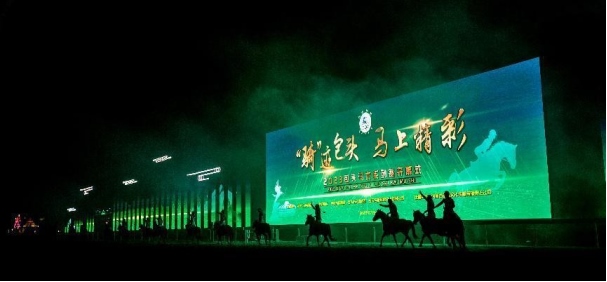 開幕式文體表演由《馬術(shù)方陣一馬當(dāng)先》、歌伴舞《我的城我的馬》、《名馬展示策馬揚(yáng)鞭》、《單馬技巧雙翼神馬》、《馬障礙秀躍馬揚(yáng)鞭》、《馬術(shù)秀人馬合一》、歌伴舞《騎跡包頭》、《無人機(jī)秀馬上精彩》八塊內(nèi)容組成。當(dāng)晚的賽汗塔拉馬術(shù)賽場流光溢彩、氣氛熱烈,場內(nèi)座無虛席、歡聲雷動。20時(shí)30分許,主騎手手持國旗,副騎手手持馬城旗幟,運(yùn)動員方陣、民族方陣、女騎方陣、馬主方陣入場,騎手們精神飽滿、英姿颯爽,不時(shí)揮手致意,現(xiàn)場觀眾用熱烈的掌聲和歡呼聲,歡迎他們的到來。達(dá)茂旗9歲賽馬冠軍阿茹樂手持彩旗引出世界名馬亮相,40對人馬合一的“千古馬頌”表演震撼全場,1000架無人機(jī)躍然天空,點(diǎn)亮“騎跡包頭 馬上精彩”的字樣……藍(lán)天、碧水、凈土的包頭在策馬奔騰的馬術(shù)競技中拉開了“中國馬城”的壯麗畫卷。