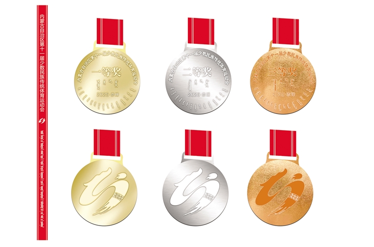 7月15日,記者從赤峰市民委獲悉,內(nèi)蒙古自治區(qū)第十一屆少數(shù)民族傳統(tǒng)體育運動會獎牌正式亮相。獎牌以本屆運動會會徽“奮進”為主基調(diào)進行設(shè)計,一面刻印會徽“奮進”圖案,一面鐫刻“內(nèi)蒙古自治區(qū)第十一屆少數(shù)民族傳統(tǒng)體育運動會”“2025?赤峰”和獲獎名次,既有本屆運動會“l(fā)ogo”形象,又明確運動會屆次、舉辦時間及地點,也寓意踐行“更快、更高、更強、更團結(jié)”的體育運動精神。(記者 肖璐)