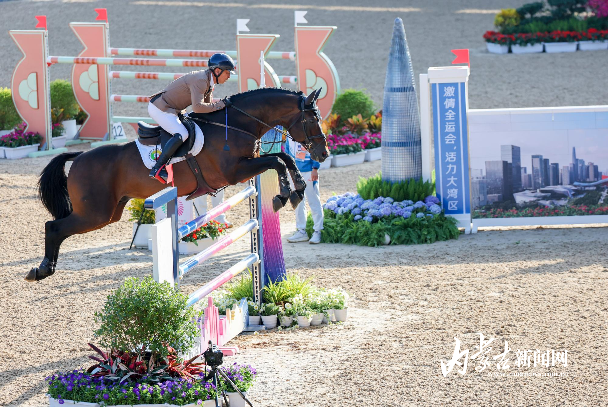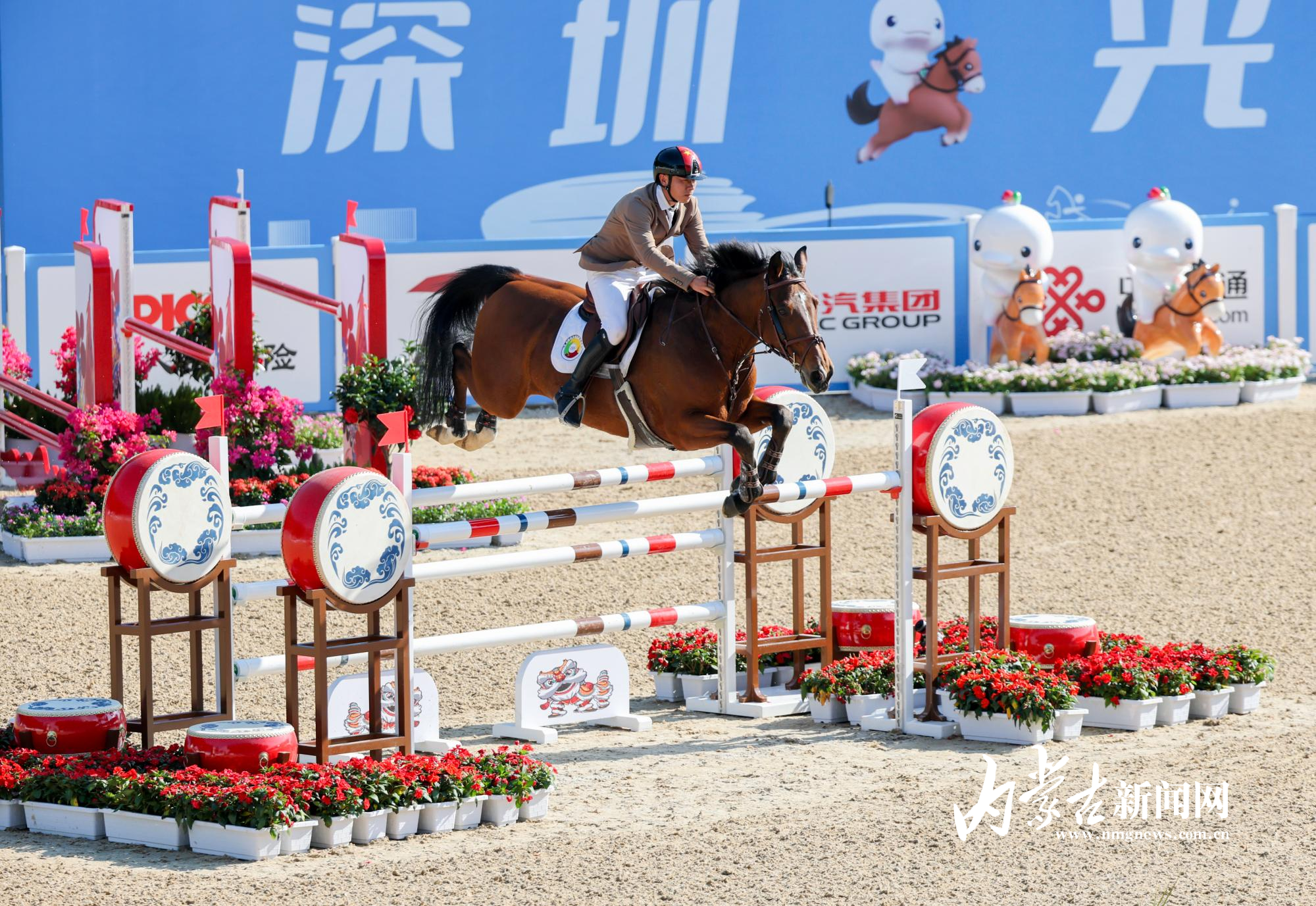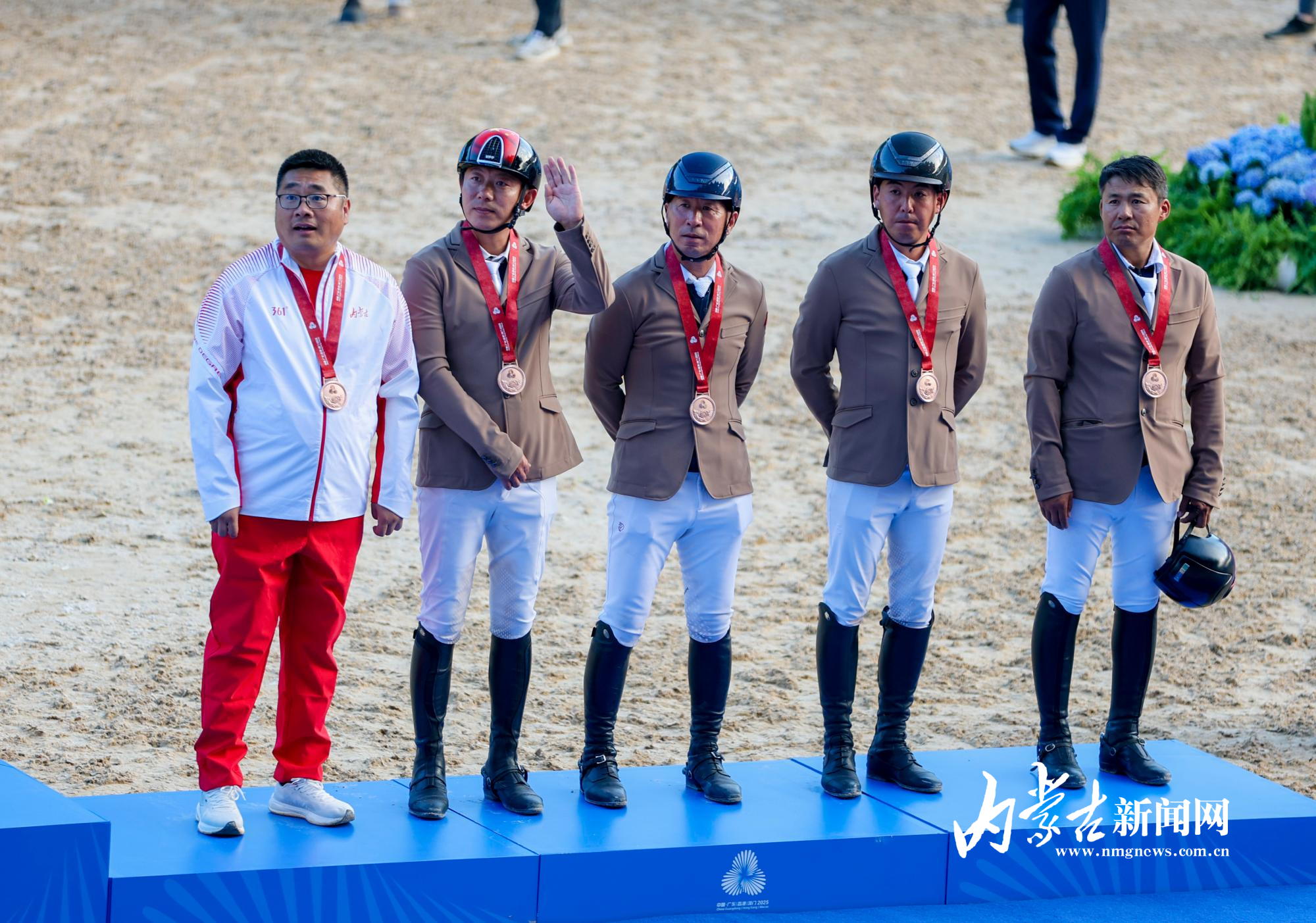 11月17日,第十五屆全國運動會馬術(shù)項目場地障礙團體賽在深圳市光明國際馬術(shù)中心進行,由達(dá)日瑪、劉同晏、張睿、韓豐組成的內(nèi)蒙古隊?wèi){借兩輪穩(wěn)定發(fā)揮,以總罰分31分的成績斬獲銅牌。
