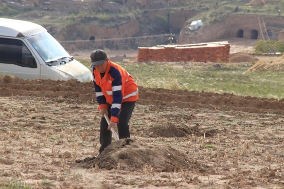 邊墻壕村是個(gè)小村莊,在村口遇見一對(duì)夫婦正在播種,據(jù)介紹全村現(xiàn)有20多戶人家四五十口人,年輕人都出去打工了,剩下些村民老人居多。讓我們?cè)俅伟宴R頭對(duì)準(zhǔn)邊墻下春播的百姓。