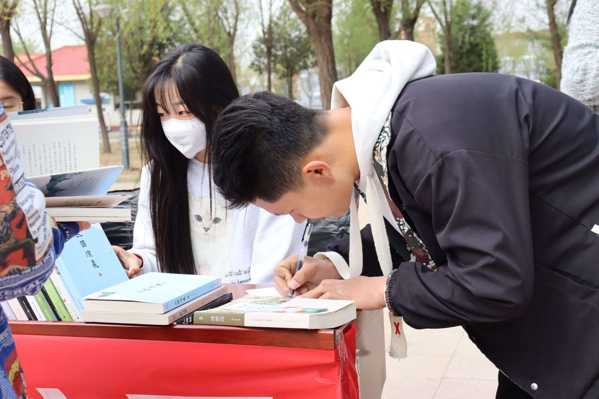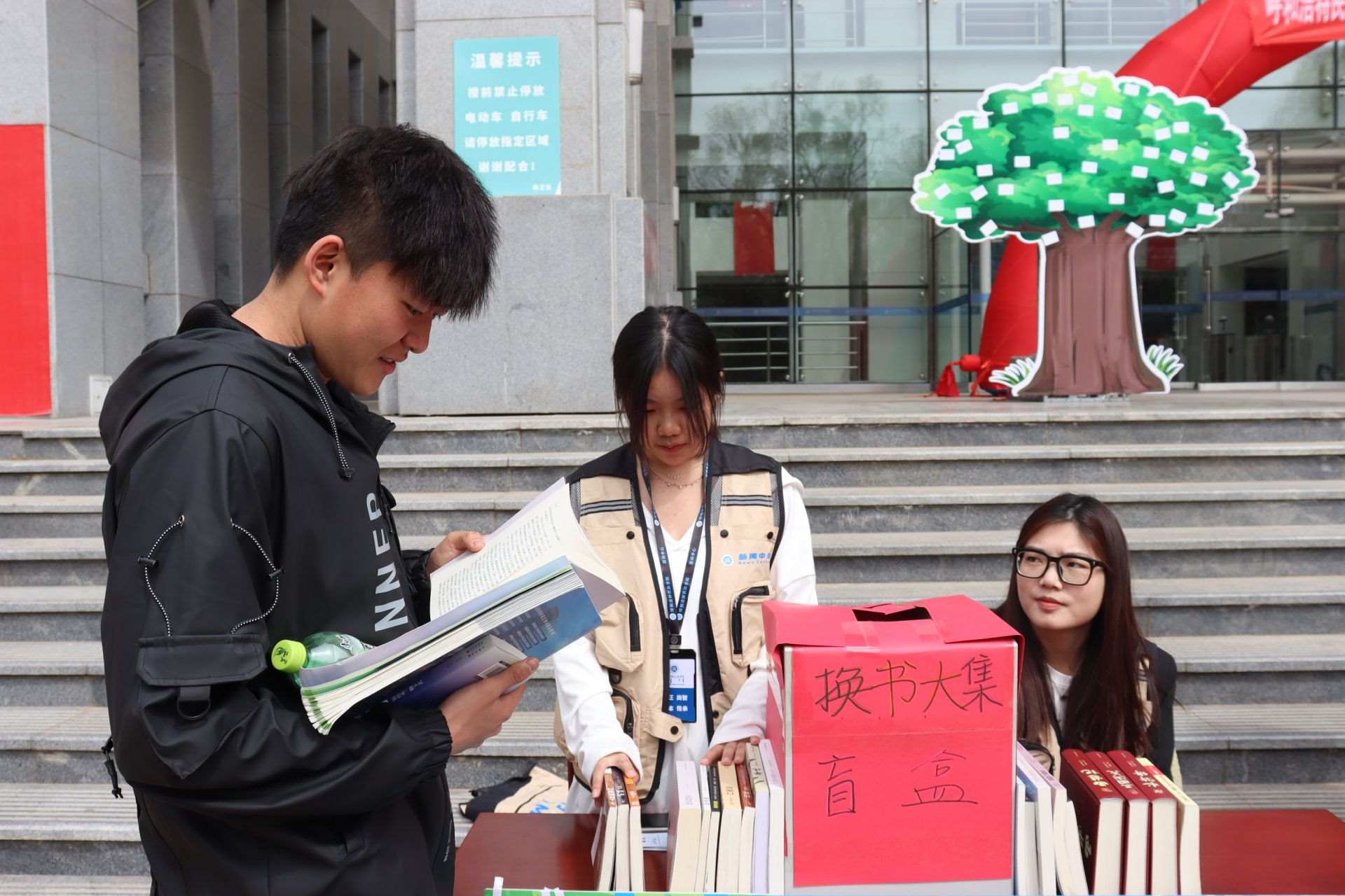 風(fēng)和日麗,春暖花開。4月23日,第28個(gè)世界讀書日,呼和浩特民族學(xué)院在南區(qū)圖書館前開展“換書大集”活動,現(xiàn)場共設(shè)置18個(gè)換書展位,特別設(shè)立換書“盲盒區(qū)”,現(xiàn)場換書300余本,同學(xué)們廣泛參與,場面火熱。
