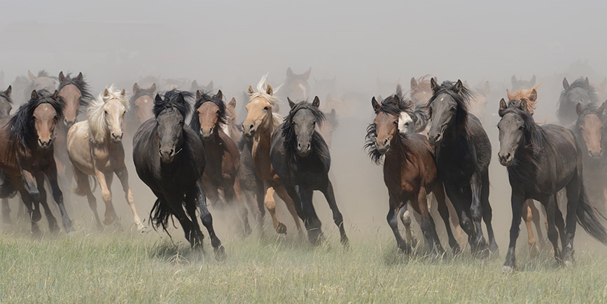哈日巴拉油畫《逐夢前行蒙古馬》