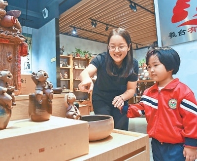 河北省新樂(lè)市,市民在參觀文創(chuàng)作品。 賈敏杰攝(新華社發(fā))