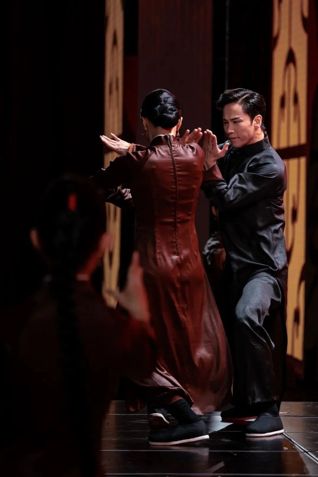 一幅《年錦》,處處透露出傳統(tǒng)紋樣傳承至今,所承載的美好愿望不變。節(jié)目中僅一件唐代大袖襦裙,就可從袖口、上衣、裙腰裙擺各處找到源自敦煌藏經(jīng)洞、法門寺等地文物的吉祥紋樣。《詠春》中詠春拳、香云紗染整技藝的“雙非遺”組合,為這場(chǎng)“高燃”對(duì)決增添了內(nèi)斂沉靜的色彩。端莊喜慶的絳紅色香云紗,其染制過程更體現(xiàn)出中國(guó)古代“天人合一”的哲學(xué)思想。