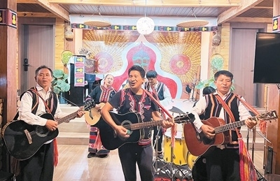 在云南省瀾滄拉祜族自治縣,拉祜族房東扎努的民宿在國慶節(jié)假期迎來滿房。今年4月,扎努改造自家老房子,把民族音樂與民宿相結合,開了一家音樂民宿——拉祜音宿。“拉祜族是能歌善舞的民族。我喜歡與人交流,喜歡鄉(xiāng)村風光和家鄉(xiāng)氣候,所以選擇回鄉(xiāng)開民宿。”作為房東,扎努常常帶游客一起唱歌跳舞,表演他創(chuàng)作的《我在瀾滄等你》《快樂拉祜》等歌曲,并向他們介紹拉祜族的民族歷史和文化。