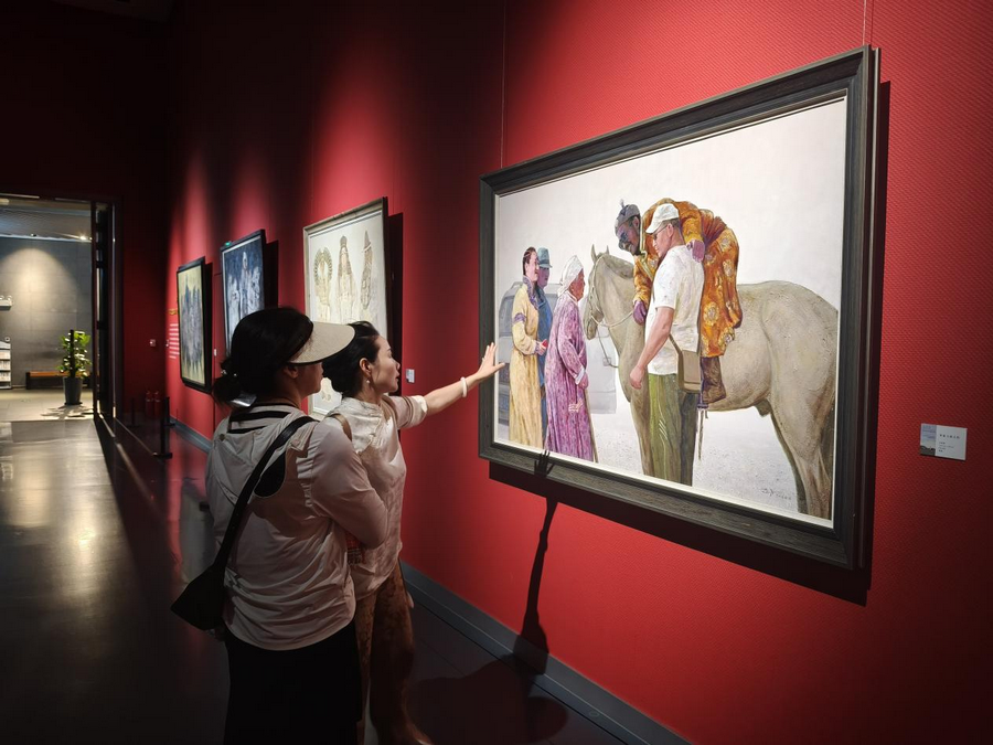 “吾心歸 ——內(nèi)蒙古美術(shù)館館藏妥木斯師生油畫(huà)作品展”(8.8-9.7,3/4號(hào)展廳):該展覽像一部立體的草原藝術(shù)編年史,妥木斯筆下的蒙古馬依然昂揚(yáng),而弟子們的作品早已玩出了新花樣:超現(xiàn)實(shí)手法讓羊群飄在星空下,極簡(jiǎn)線條勾勒出蒙古包的幾何之美。在“當(dāng)代回聲”篇章里,能清晰看見(jiàn)草原意象如何在畫(huà)布上完成從傳統(tǒng)到現(xiàn)代的蛻變,就像馬頭琴也能彈出電子旋律,根沒(méi)變,韻更活了。
