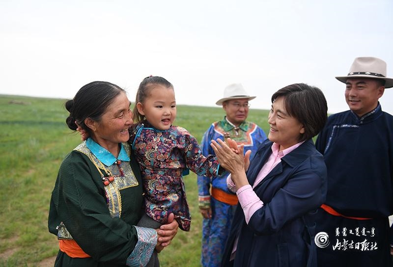 7月12日,自治區(qū)黨委副書記、自治區(qū)主席布小林來到錫林郭勒盟東烏珠穆沁旗看望牧戶占其布一家。內蒙古日報社融媒體記者 韓卿立 攝