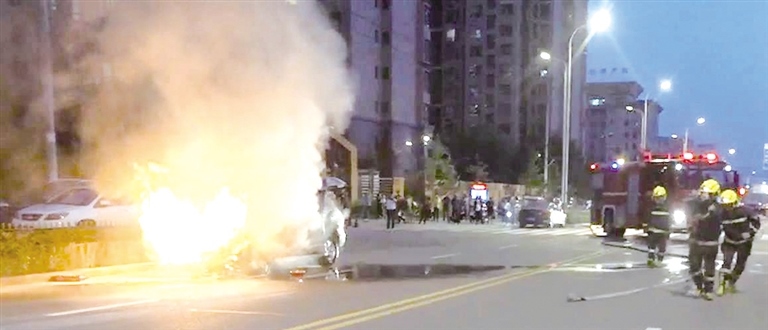 8月24日19時34分,包頭市昆區(qū)華發(fā)新城小區(qū)西門一輛越野車在行駛中突然冒煙起火,旁邊還停著幾輛汽車,隨時會被引燃,車主急忙報警求救。包頭市消防救援支隊白云路消防救援站接警后立即出動3輛消防車和12名消防員趕赴現(xiàn)場。