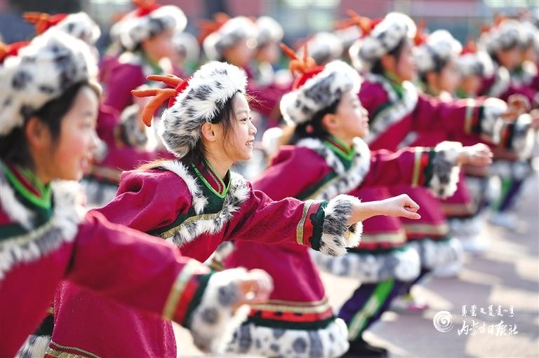 11月26日,呼和浩特市玉泉區(qū)南茶坊小學的學生在大課間跳起具有濃郁民族特色的課間操。據(jù)了解,為了讓孩子們更加了解民族傳統(tǒng)文化,熱愛自己的家鄉(xiāng),同時豐富學生的大課間生活,今年以來,南茶坊小學編排了一套具有濃郁民族特色的課間操,將民族舞蹈與課間操相結(jié)合,讓學生既能鍛煉身體,又能感受到家鄉(xiāng)民族文化的魅力。內(nèi)蒙古日報社融媒體記者 王磊 攝