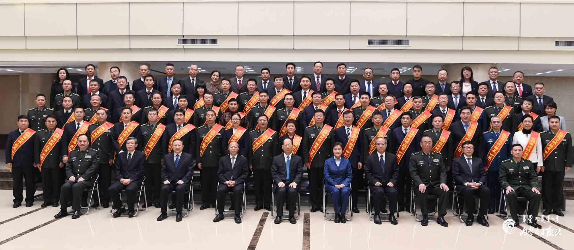 12月22日,石泰峰、布小林、李秀領等自治區(qū)領導在呼和浩特會見內蒙古自治區(qū)雙擁模范城(旗縣、市區(qū))命名大會參會代表并合影。內蒙古日報記者 袁永紅 攝