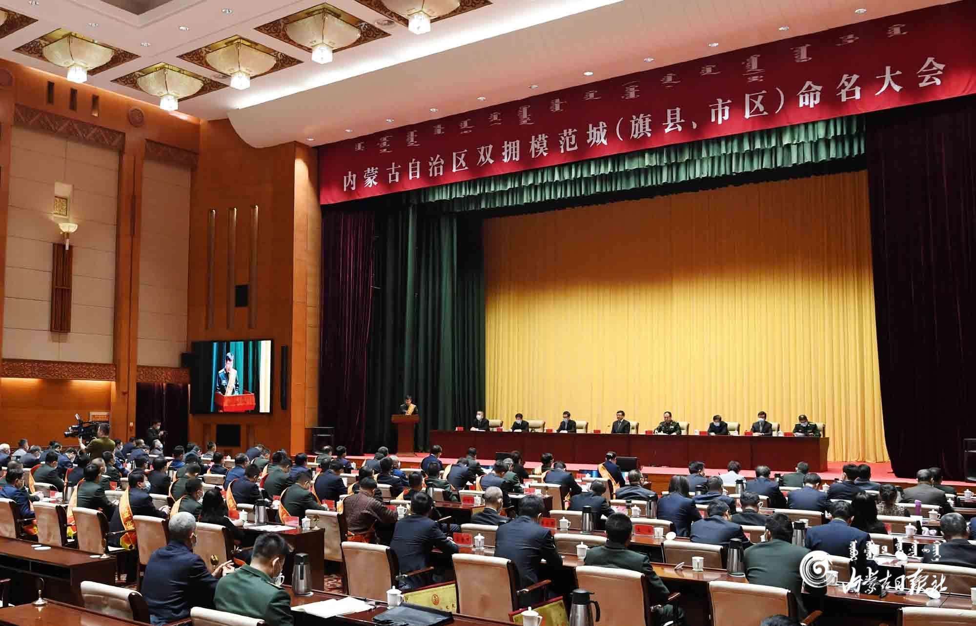 會上,宣讀了《中共內蒙古自治區(qū)委員會、內蒙古自治區(qū)人民政府、內蒙古軍區(qū)關于命名自治區(qū)雙擁模范城(旗縣、市區(qū))的決定》。命名表彰了呼和浩特市、包頭市等67個自治區(qū)雙擁模范城(旗縣、市區(qū))。(內蒙古日報記者 霍曉慶)