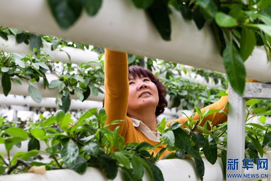 農(nóng)民在內(nèi)蒙古自治區(qū)巴彥淖爾市五原縣隆興昌鎮(zhèn)的一個(gè)現(xiàn)代農(nóng)業(yè)試驗(yàn)示范區(qū)內(nèi)采摘無(wú)土栽培的蔬菜。新華社記者 劉磊 攝