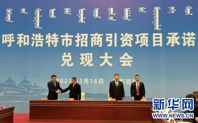 呼和浩特市招商引資項(xiàng)目承諾兌現(xiàn)大會(huì)現(xiàn)場(chǎng)。新華網(wǎng)發(fā)