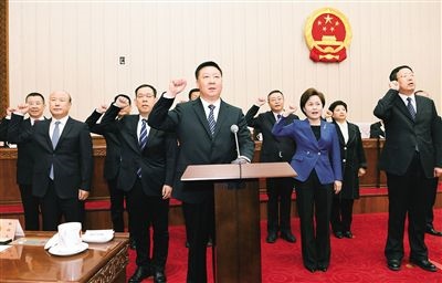 新任職人員向憲法莊嚴(yán)宣誓。