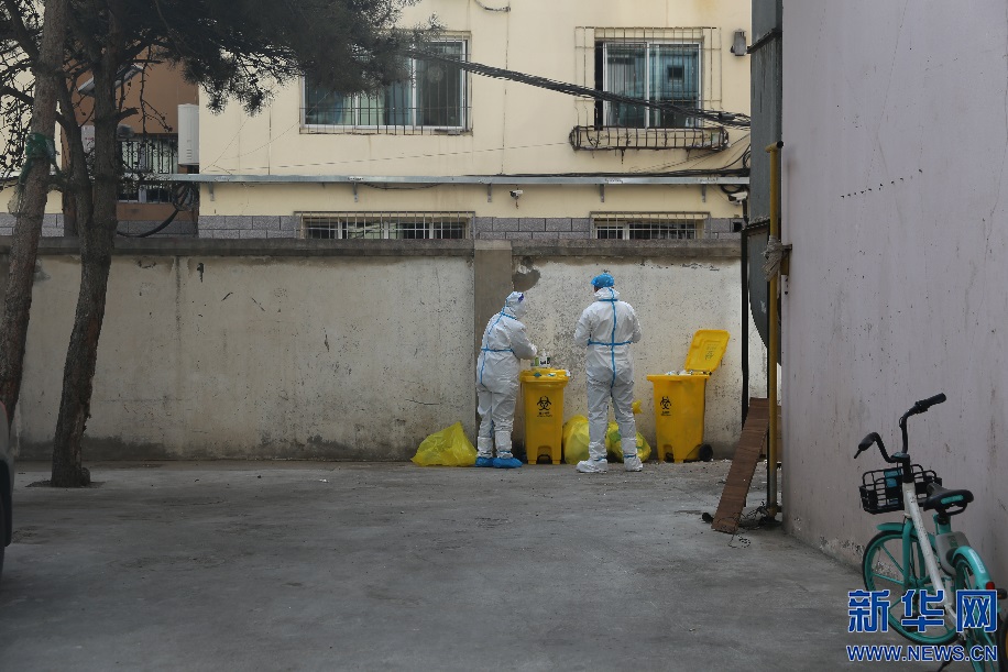經(jīng)過連日配合,籍東斌和運送樣本的搭檔形成了默契,一個動作一個眼神就知道搭檔需要什么幫助?!八⊥陿颖镜怯浲曛?,我要幫助她做消殺?!奔畺|斌說。新華網(wǎng)發(fā) 李倩攝