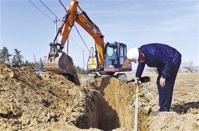 3月21日,工作人員駕駛挖掘機在呼和浩特市賽罕區(qū)郜獨利村農(nóng)田里開挖滴灌管道。據(jù)了解,賽罕區(qū)2022年共實施高標準農(nóng)田建設(shè)項目3.5萬畝,總投資6300萬元。項目于3月21日全面開工建設(shè),建成后將形成“地平整、土肥沃、旱能灌、澇能排、渠相連、路相通、林成網(wǎng)”的新型高標準農(nóng)田,預計糧食畝均增產(chǎn)20%以上,水資源利用率提高30%以上。(王磊攝)