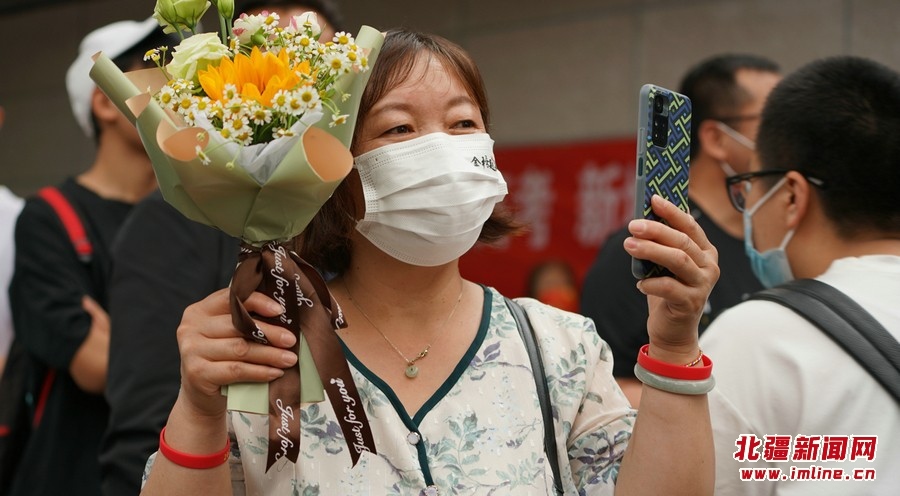 6月8日下午5時30分,呼和浩特市第二中學考點外站滿了考生親屬、朋友。他們或手捧鮮花、或拉上慶祝橫幅,等待考生們“凱旋”。