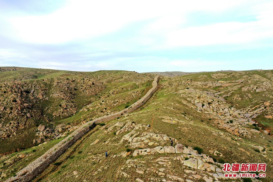 據(jù)考證,秦長城東起呼和浩特市新城區(qū)坡根底村北部的大青山南麓,沿陰山山脈西行,經(jīng)武川縣出大青山,穿越固陽縣中部的色爾騰山、烏拉特前旗的查石太山和烏拉特中旗的罕烏拉山,西部端點在小狼山西麓石蘭計山口。其中,土筑長城墻體于地表呈明顯的土壟狀,石筑長城遺跡保存較好,基寬3—5米,墻體外壁高5米左右,沿線建筑有烽燧、障城及部都尉城。沿山而建,氣勢磅礴,蔚為壯觀。固陽縣境內(nèi)全長近96公里,是中國早期長城的代表性段落;1987年被列入世界文化遺產(chǎn)。2012—2018年,經(jīng)國家文物局批準(zhǔn),包頭市文物局組織實施了固陽秦長城天盛成段的保護工程,修繕長城墻體2148米、烽燧1座。