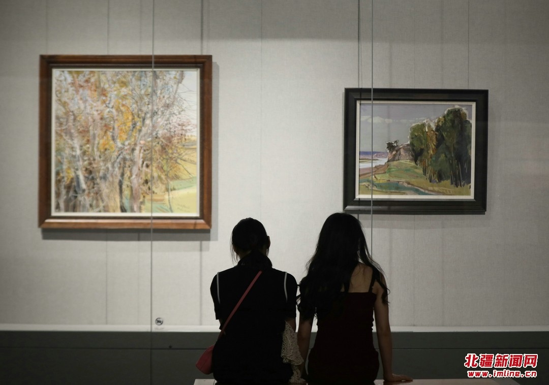 觀眾在參觀美術(shù)作品展