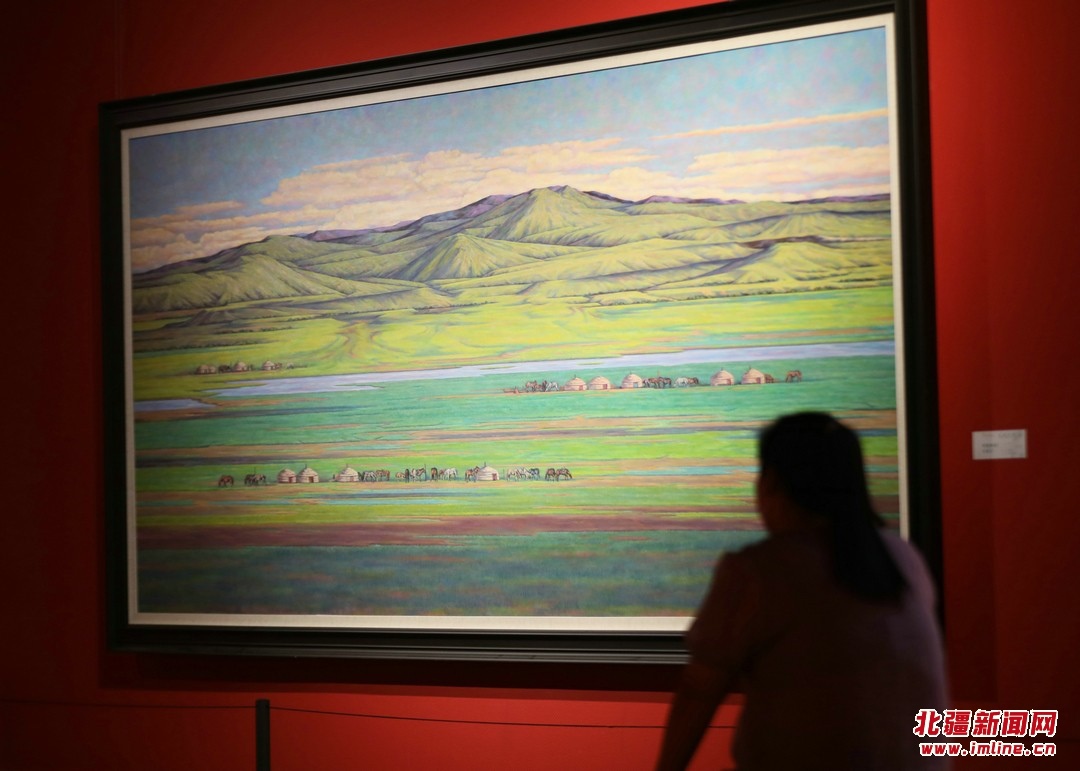 “美麗中國·內(nèi)蒙古形象”主題美術(shù)作品展聚焦“兩個打造”,119幅美術(shù)作品以全區(qū)12個盟市獨特的自然風(fēng)光、人文景觀、生態(tài)面貌為底色,描繪內(nèi)蒙古草之茂、林之郁、湖之美、水之秀、田之沃、沙之魅,全面展示了內(nèi)蒙古真善美的形象。