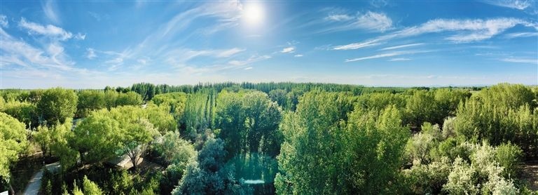 初夏時節(jié),位于巴彥淖爾市臨河區(qū)烏蘭圖克鎮(zhèn)的國營新華林場內(nèi)綠樹掩映、鳥鳴聲聲,鄰近的湖泊波光粼粼,微風吹過,溫潤清涼。