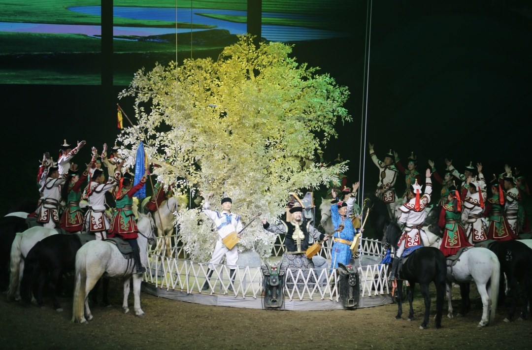 《千古馬頌》既具奪人眼球的觀賞性,又有直指人心的文化內(nèi)涵;既是一項(xiàng)填補(bǔ)內(nèi)蒙古馬文化駐場(chǎng)演出空白的旅游產(chǎn)品,又是一部挖掘蒙古民族與馬深厚情感的藝術(shù)史詩(shī),成為近年來提升內(nèi)蒙古自治區(qū)文化產(chǎn)業(yè)核心競(jìng)爭(zhēng)力、展現(xiàn)民族融合團(tuán)結(jié)奮斗的一部?jī)?yōu)秀作品。(攝影/內(nèi)蒙古日?qǐng)?bào)·草原全媒記者郭偉偉)
