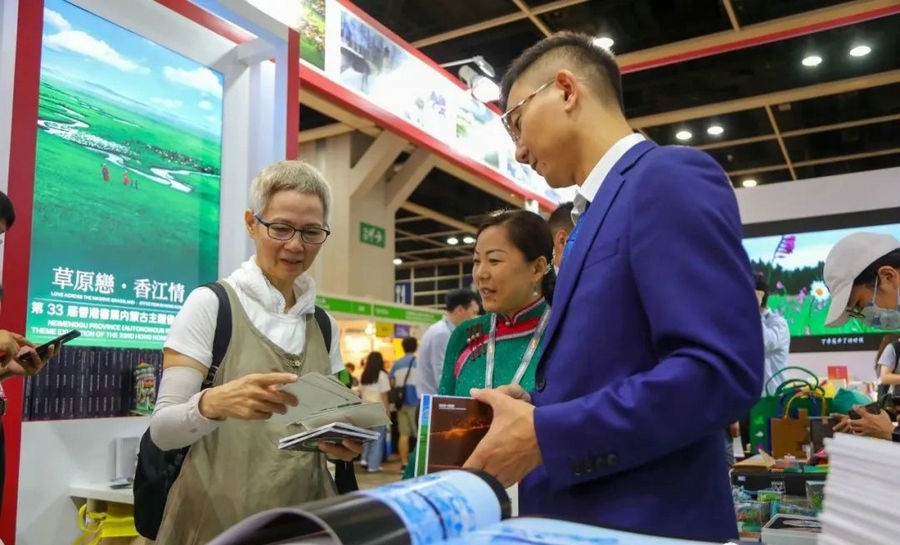 7月19日上午10:00,第33屆香港書(shū)展在香港會(huì)議展覽中心開(kāi)幕。內(nèi)蒙古主題?。▍^(qū))展區(qū)正式亮相,展出近年來(lái)內(nèi)蒙古自治區(qū)出版的50種精品主題出版物、200種文藝類出版物、20種數(shù)字融合出版物、89種優(yōu)秀音像制品等,同時(shí)還展出了80種優(yōu)秀少兒出版物、《內(nèi)蒙古印象》攝影作品、“內(nèi)蒙古禮物”文創(chuàng)產(chǎn)品等,國(guó)家一級(jí)文物紅山文化玉龍高仿制品也亮相展區(qū),吸引眾多讀者駐足觀賞。