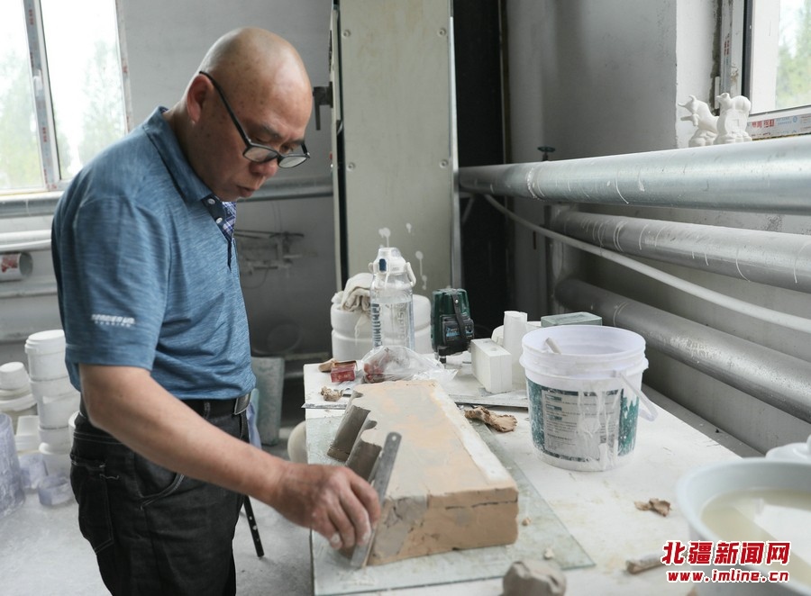 7月26日,內(nèi)蒙古興和縣龍興陶瓷產(chǎn)業(yè)園,工作人員正在加工制作陶瓷產(chǎn)品。