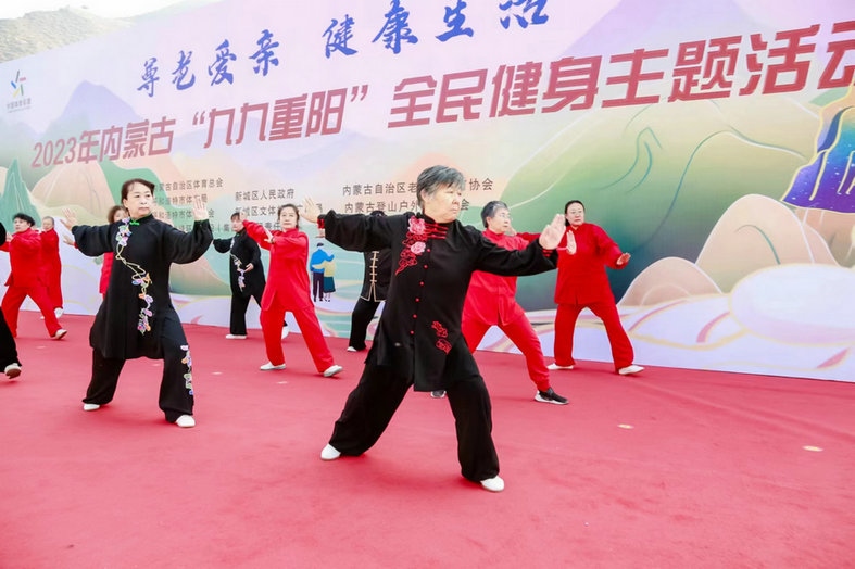 當日,由內蒙古自治區(qū)體育總會主辦、呼和浩特市體育局承辦的2023年內蒙古“九九重陽”全民健身主題活動在國家登山健身步道舉行?,F場設置了3公里登高健身活動和全民健身展演等活動。