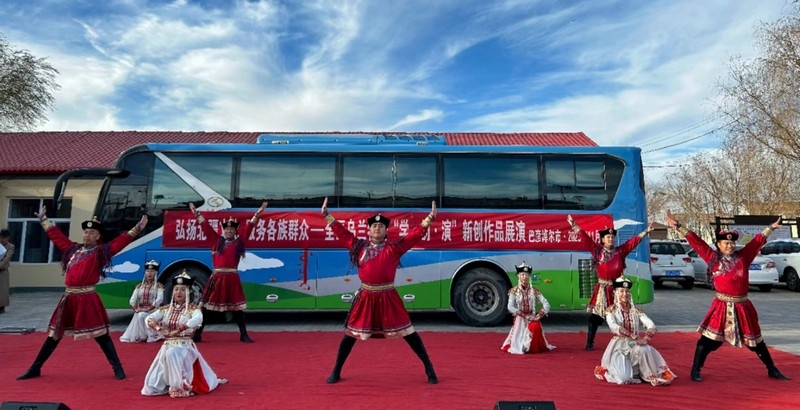 弘揚北疆文化 服務(wù)各族群眾——全區(qū)烏蘭牧騎“學(xué)·創(chuàng)·演”新創(chuàng)作品展演呼和浩特賽罕區(qū)敕勒川路街道東古樓村活動現(xiàn)場